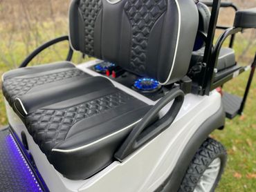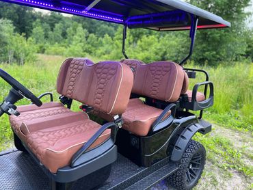 Our prestigious collection has the most luxurious carts you can buy! Starting with a complete tear down to the frame and then adding any custom parts you can think of. These carts are one of a kind and full of custom upgrades. These carts are completely unique from stretch kits to touch screen radios, these carts have it all.